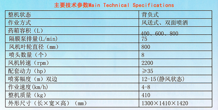 3WFB-600系列背負式風(fēng)送噴霧機,是我公司采用國外先進技術(shù)設(shè)計研產(chǎn),它以雙向疊加出風(fēng)口,藥箱容積大、風(fēng)送快、射程遠、霧化均勻、霧滴顆粒小等諸多獨特優(yōu)勢占據(jù)我國新型果園噴霧機的領(lǐng)先地位。機型特點: